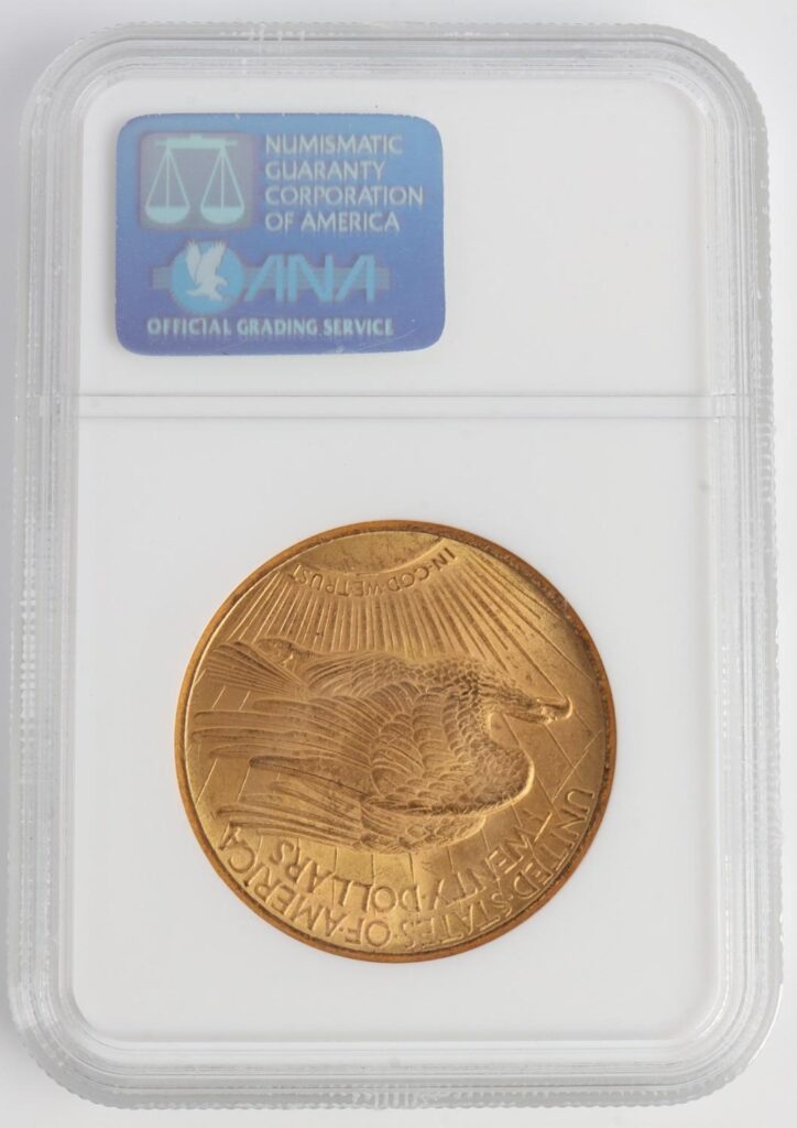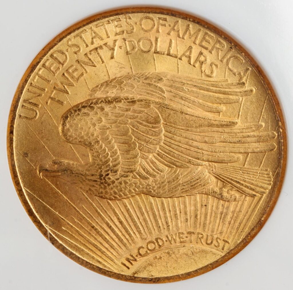 The Saint-Gaudens double eagle is a twenty-dollar gold coin, or double eagle, produced by the United States Mint from 1907 to 1933. The coin is named after its designer, the sculptor Augustus Saint-Gaudens, who designed the obverse and reverse. It is considered by many to be the most beautiful of U.S. coins.